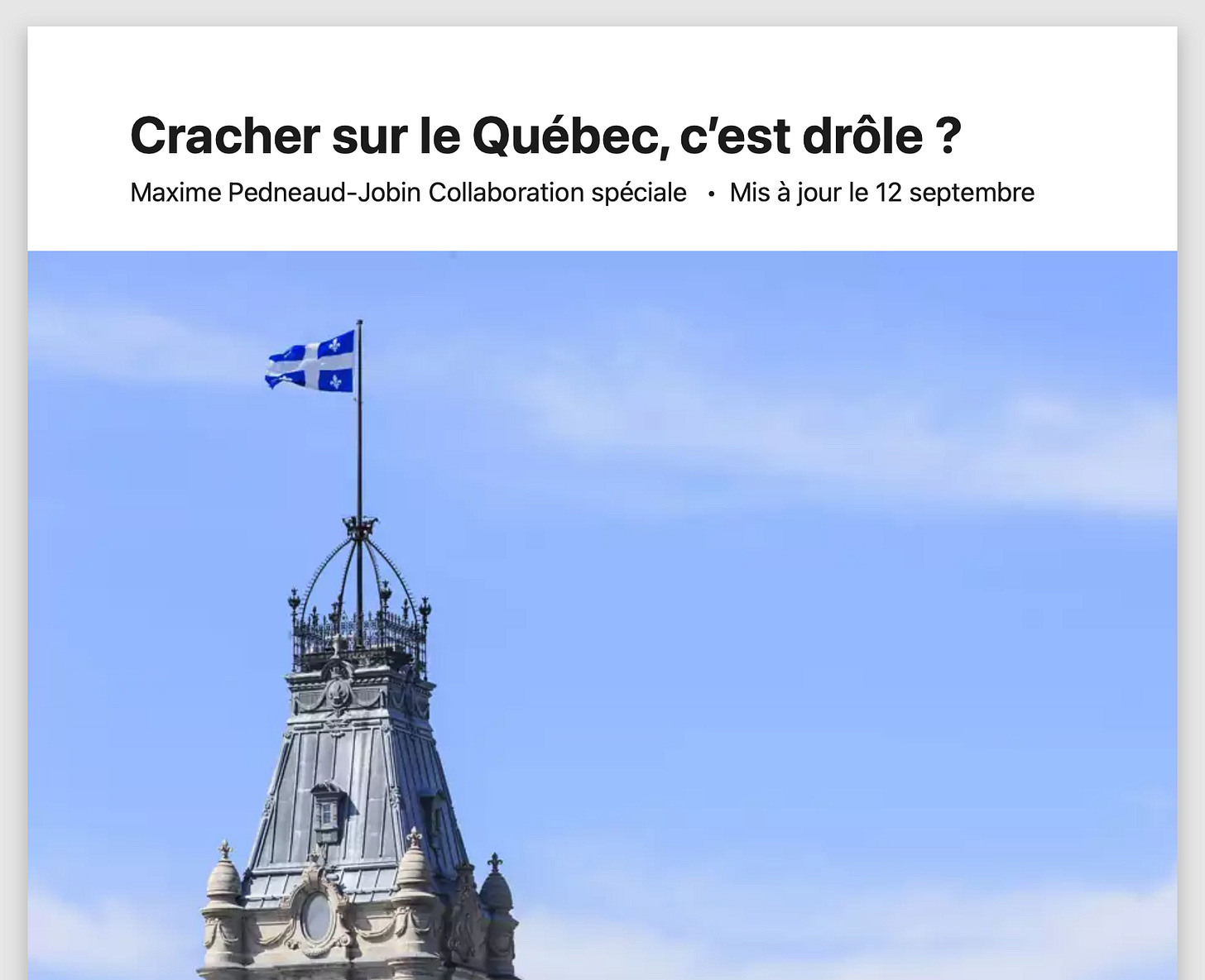 Voilà un excellent texte, que je partage quasi entièrement, à l'exception peut-être du fait que je suis beaucoup plus sévère que l'auteur (monsieur Chandonnet) envers MLA et sa clique de "faux-joyeux " rassemblés autour de la table à chaque émission. En tant qu'animatrice sur les ondes d'une radio d'état, madame Arsenault pourrait juste se contenter de jouer (la fausse) l'objectivité journalistique, mais non ... Elle se sent obligée de faire du zèle et elle en remet constamment en matière de politiquement correct et autres billevesées bien-pensantes de cette eau ... Ce faisant, elle (et son équipe) rendent cette émission parfaitement imbuvable pour les auditeurs et inéquitable pour les invités qui ne sont pas dans la lignée post-nationaliste et multuculturaliste de la gauche intersectionnelle qui y sévit. Cela étant, le pseudo-humour antinationaliste et racialiste d'Hassouna qu'a dénoncé avec raison MPJ, n'est que la pointe de cet iceberg de "wokisme" qui rend ce genre d'émission-spectacle abject à mes yeux. Ici, dans le cas de l'humoriste fielleux, MLA aurait pu et du y mettre un stop mais que voulez-vous ... Le courage et l'honnêteté intellectuelle ne sont hélas pas l'apanage de tout le monde, on l'a encore une fois bien vu ici. Enfin ... ;)